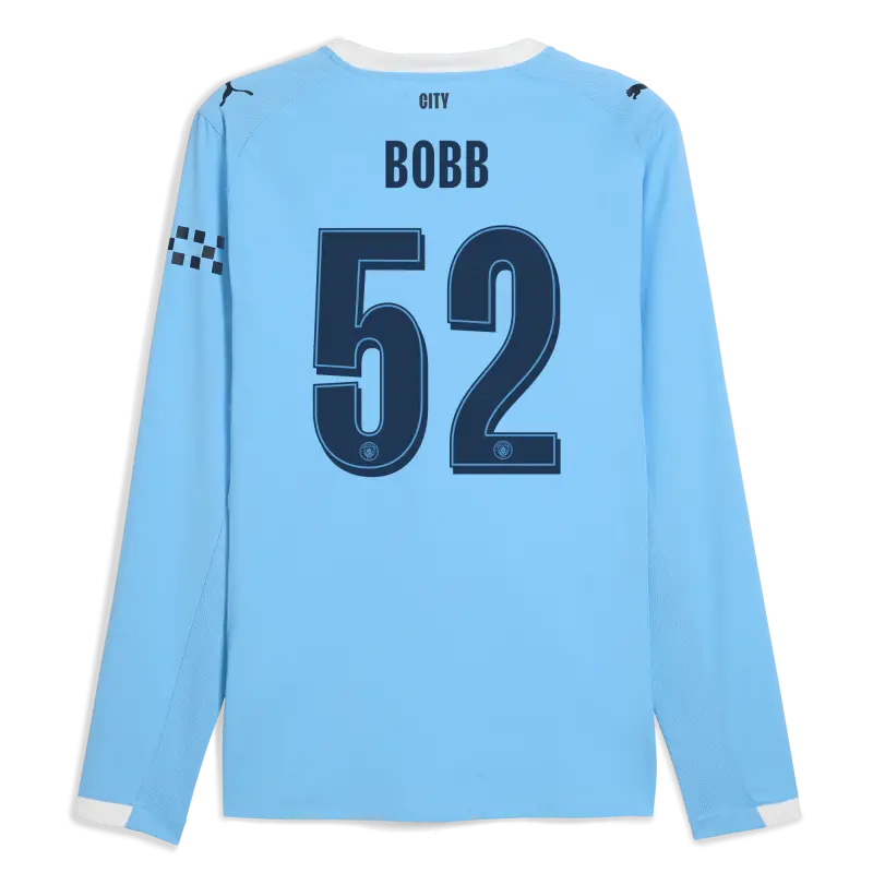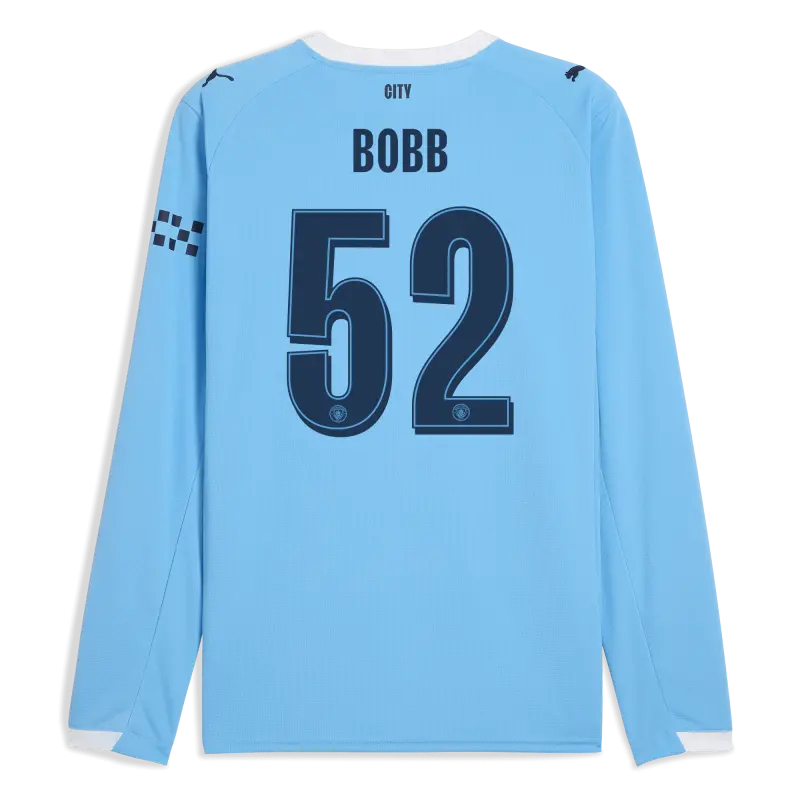 Manchester City Man City Home Jersey 2025/26 Long Sleeve With BOBB 52 Printing