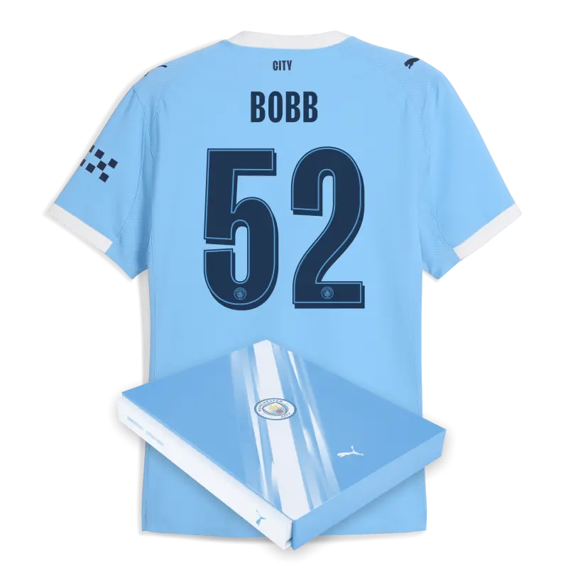 Manchester City Man City Home Authentic Jersey 2025/26 With BOBB 52 Printing in Gift Box