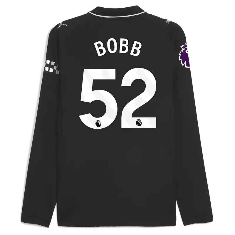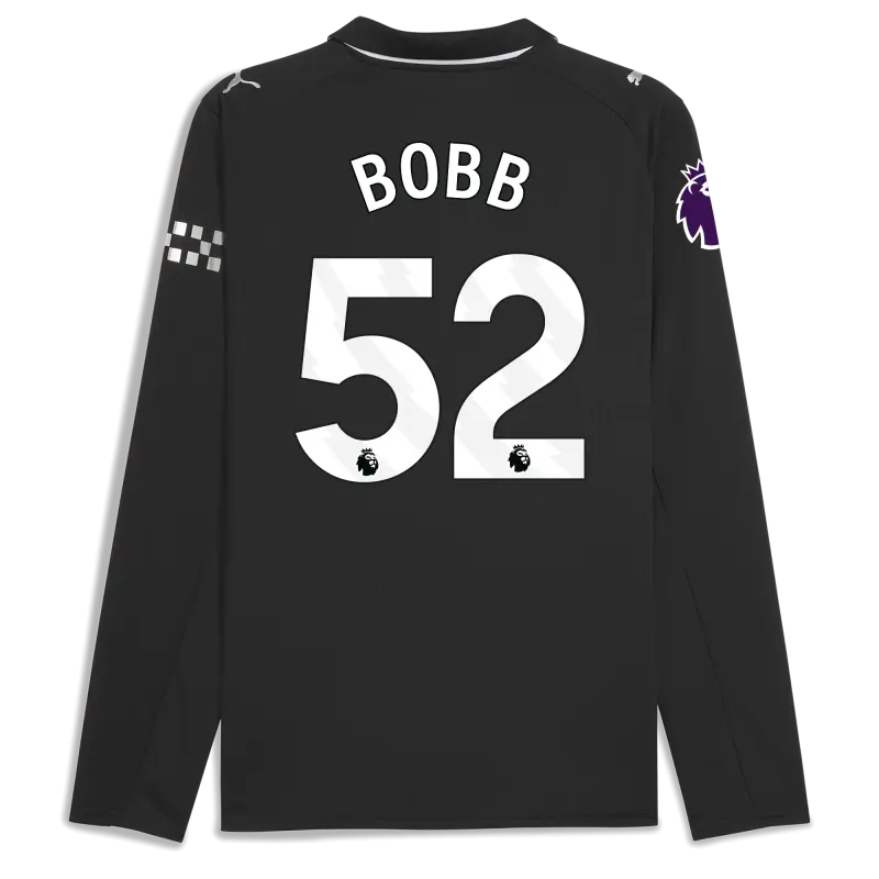 Manchester City Premier League Away Jersey 2025/26 Long Sleeve With BOBB 52 Printing