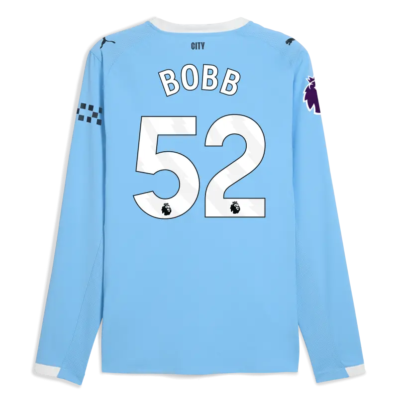 Manchester City Premier League Home Authentic Jersey 2025/26 Long Sleeve With BOBB 52 Printing