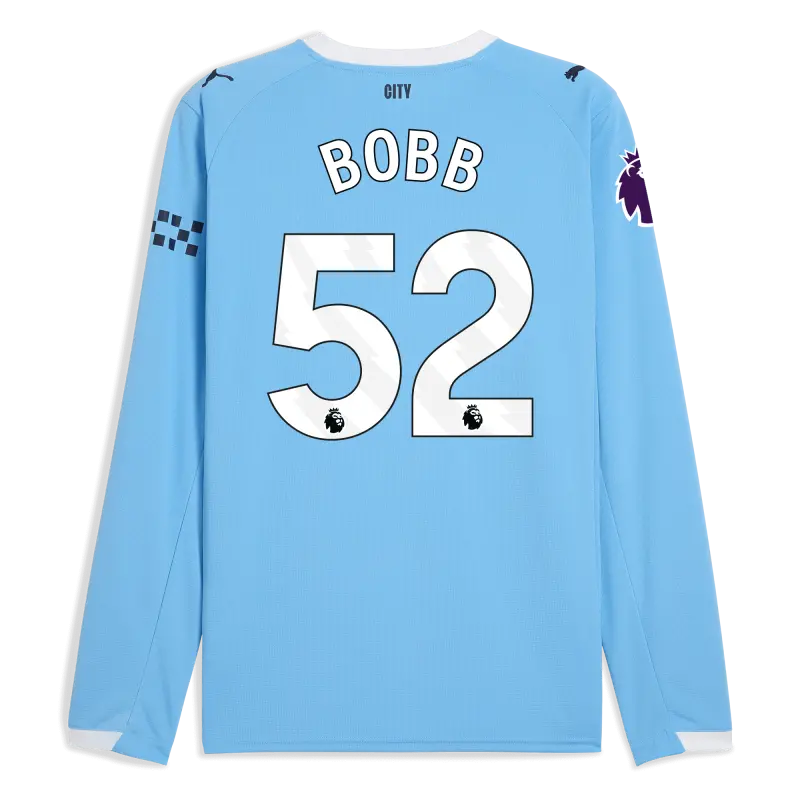 Manchester City Premier League Home Jersey 2025/26 Long Sleeve With BOBB 52 Printing
