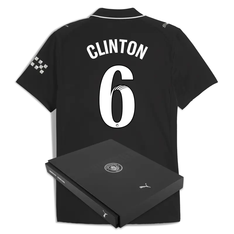 Manchester City Away Authentic Jersey 2025/26 With CLINTON 6 Printing in Gift Box