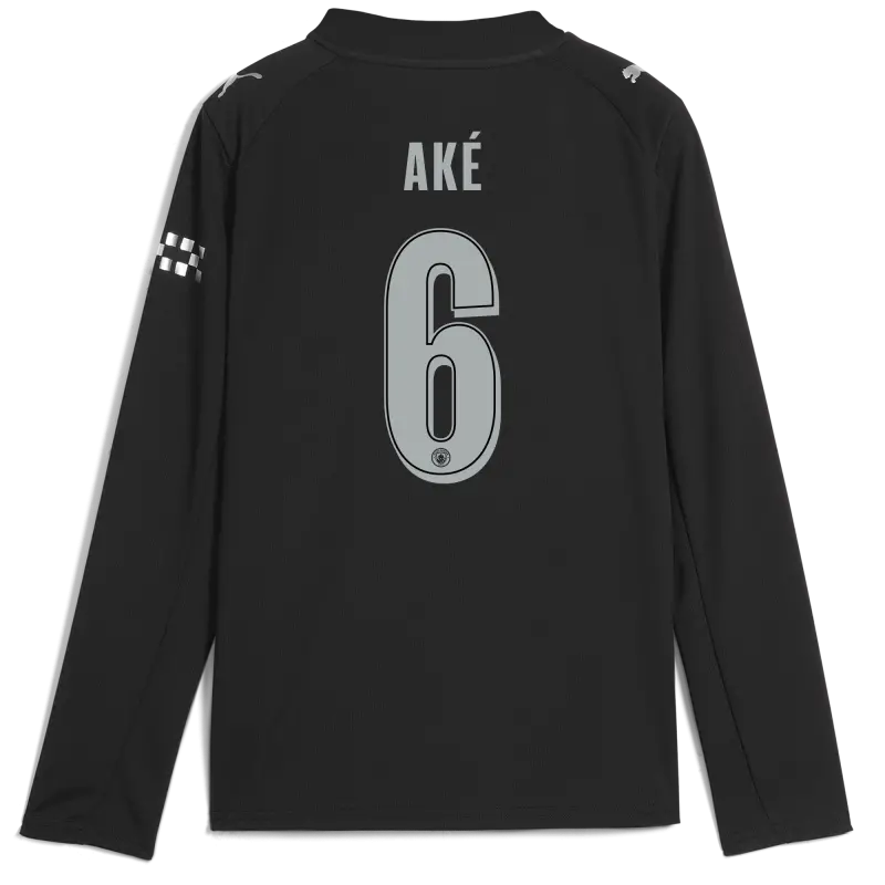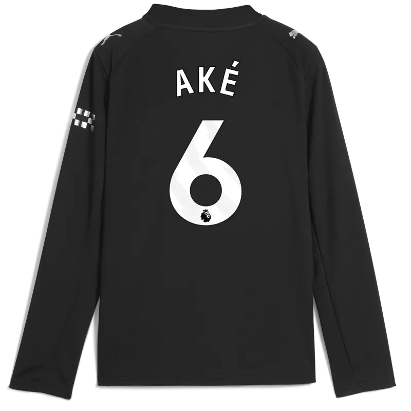 Kids’ Manchester City Man City Champions League Away Jersey 2025/26 Long Sleeve With AKÉ 6 Printing