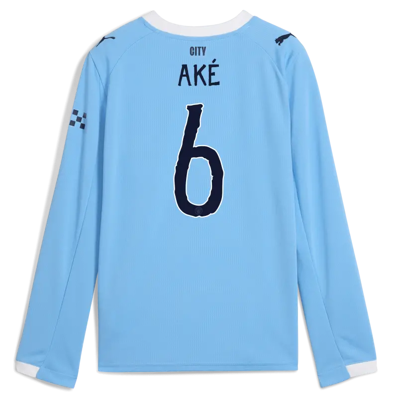 Kids’ Manchester City Home Jersey 2025/26 Long Sleeve With AKÉ 6 Printing