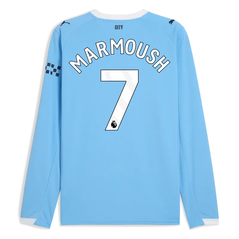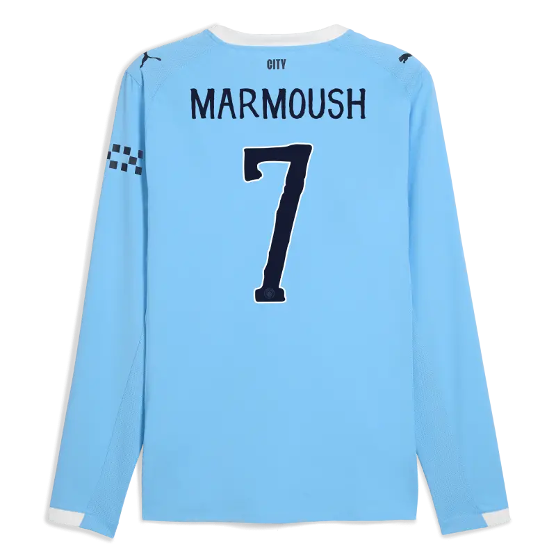 Manchester City Home Jersey 2025/26 Long Sleeve With MARMOUSH 7 Printing