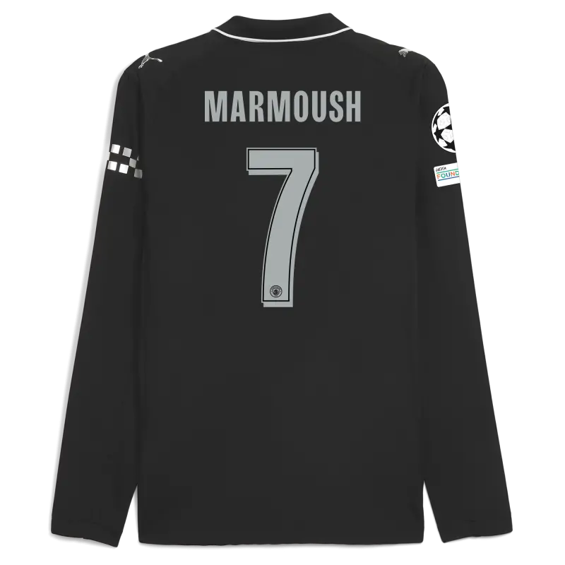 Manchester City Man City Champions League Away Authentic Jersey 2025/26 Long Sleeve With MARMOUSH 7 Printing