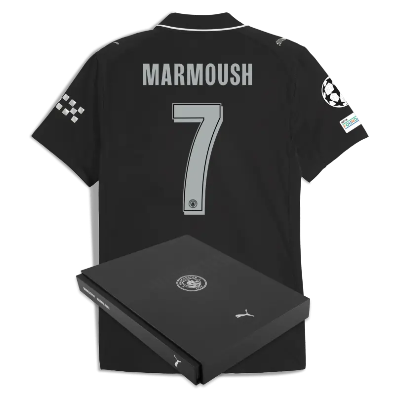 Manchester City Man City Champions League Away Authentic Jersey 2025/26 With MARMOUSH 7 Printing in Gift Box