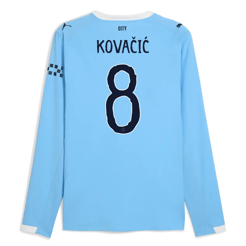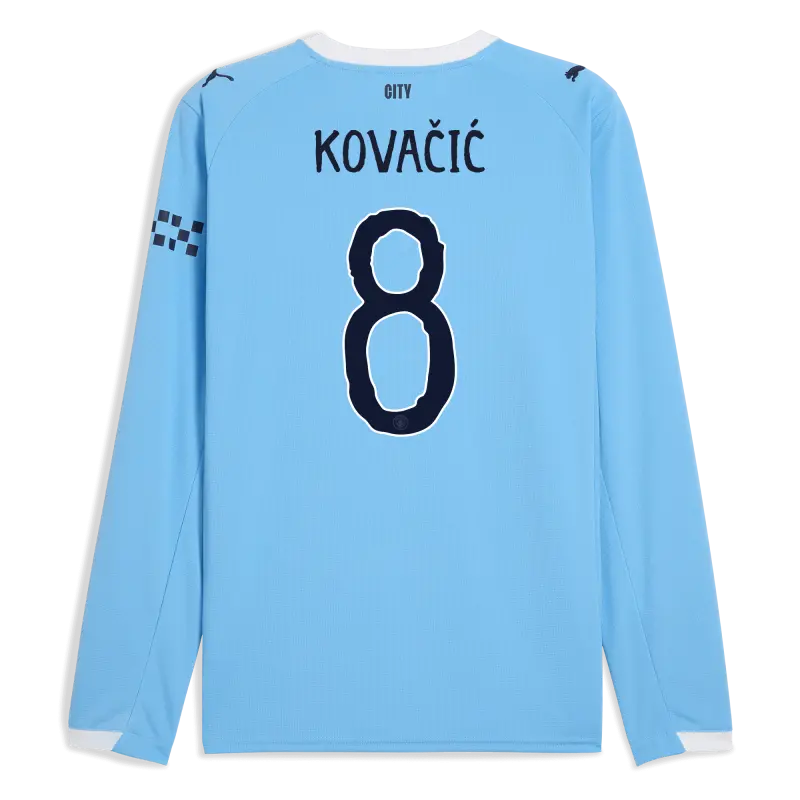 Manchester City Home Jersey 2025/26 Long Sleeve With KOVAČIĆ 8 Printing