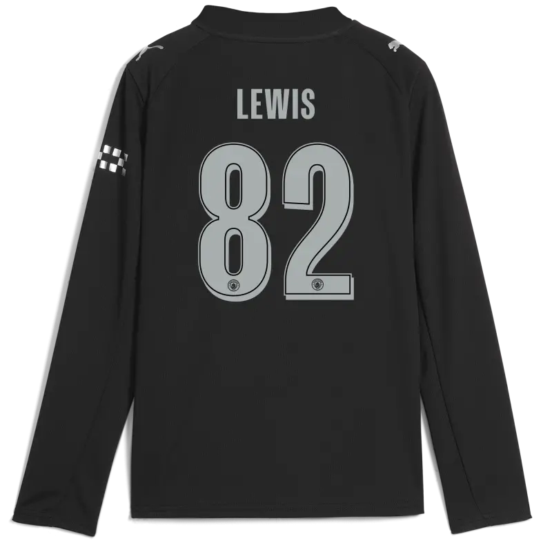 Kids’ Manchester City Man City Away Jersey 2025/26 Long Sleeve With LEWIS 82 Printing