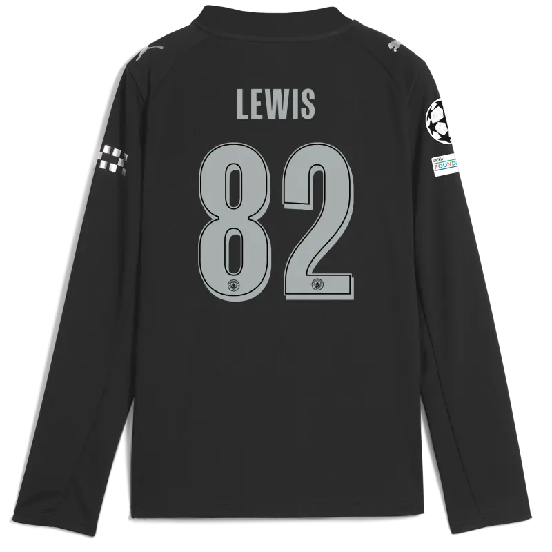 Kids’ Manchester City Man City Champions League Away Jersey 2025/26 Long Sleeve With LEWIS 82 Printing
