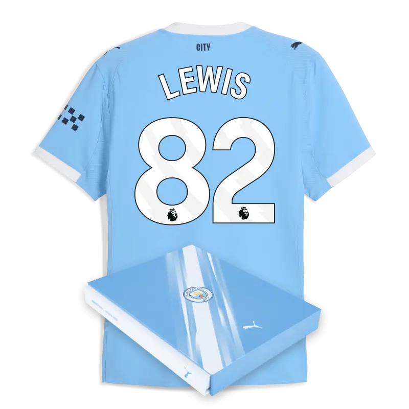 Manchester City Home Authentic Jersey 2025/26 With LEWIS 82 Printing in Gift Box