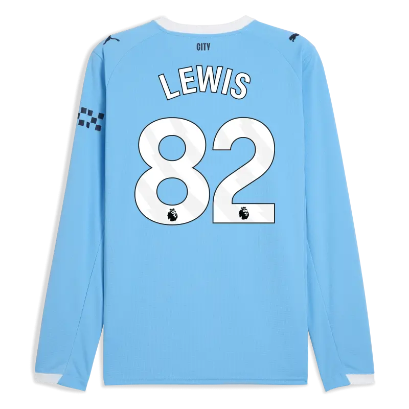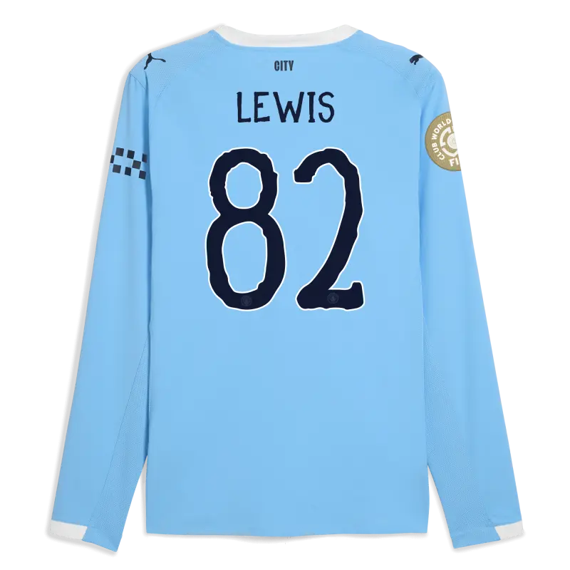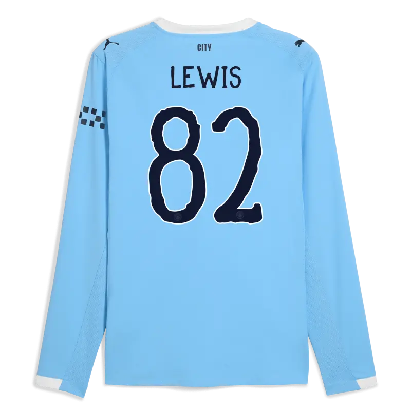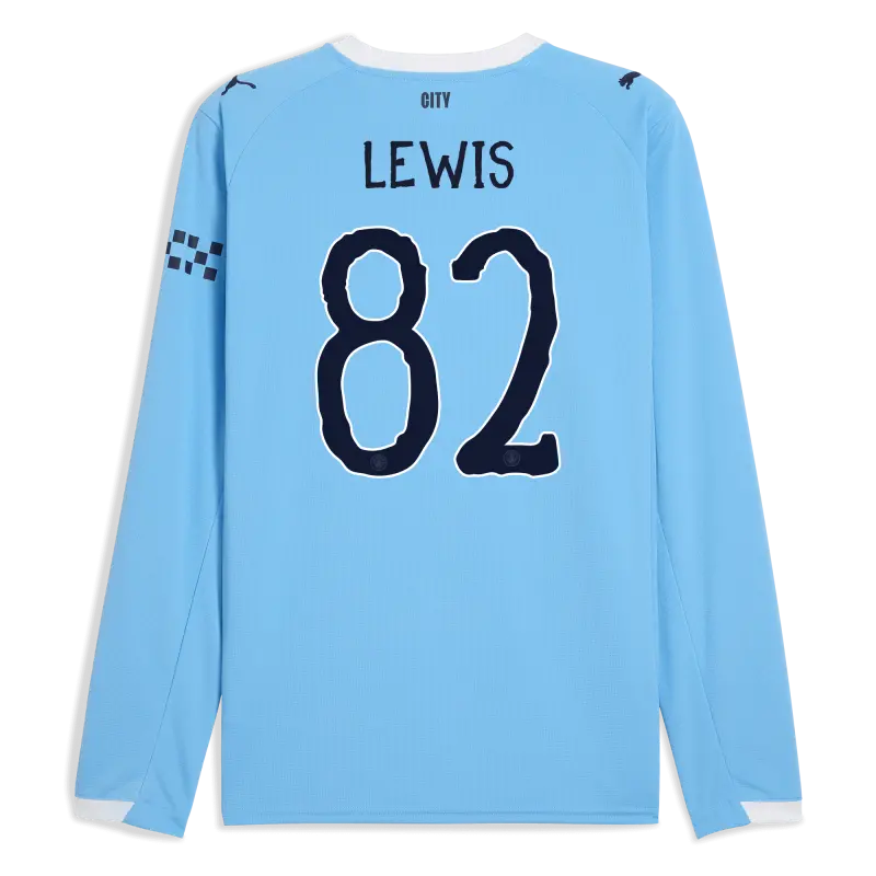Manchester City Home Jersey 2025/26 Long Sleeve With LEWIS 82 Printing