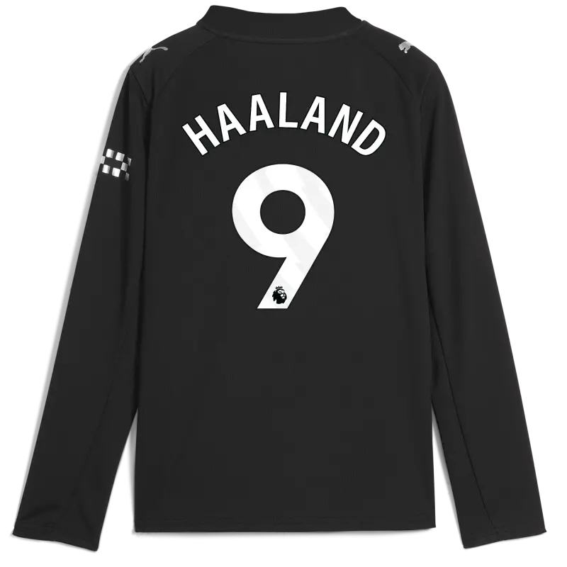 Kids’ Manchester City Away Jersey 2025/26 Long Sleeve With HAALAND 9 Printing