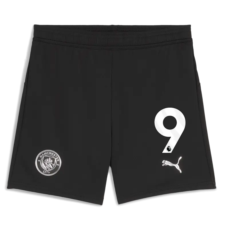 Kids’ Manchester City Football Shorts Black 2025/26 With #9