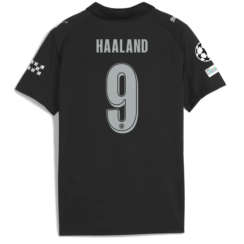 Kids’ Manchester City Man City Champions League Away Jersey 2025/26 With HAALAND 9 Printing