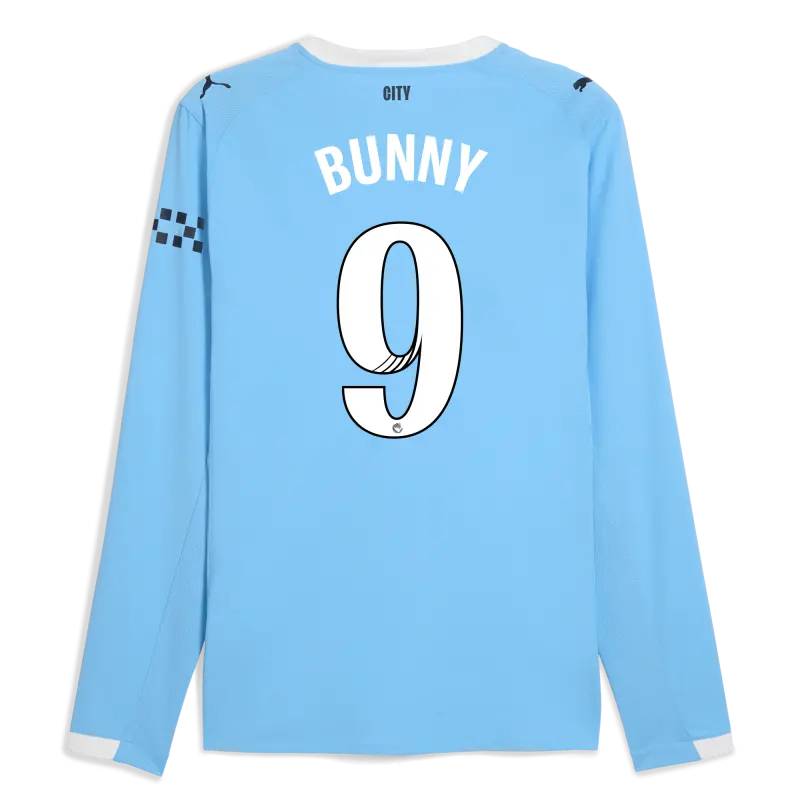 Manchester City Home Authentic Jersey 2025/26 Long Sleeve With BUNNY 9 Printing