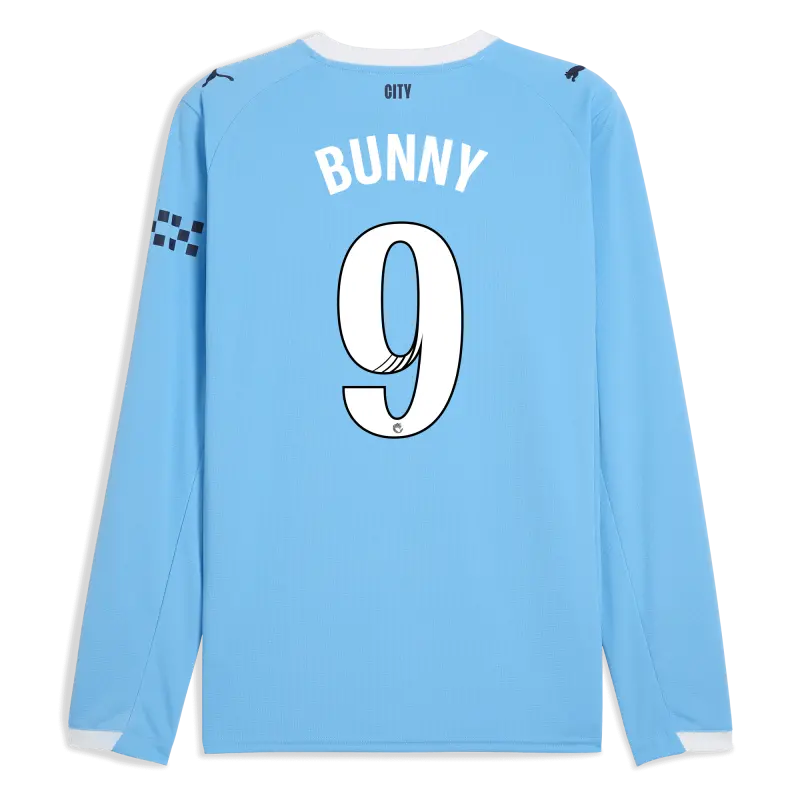 Manchester City Home Jersey 2025/26 Long Sleeve With BUNNY 9 Printing