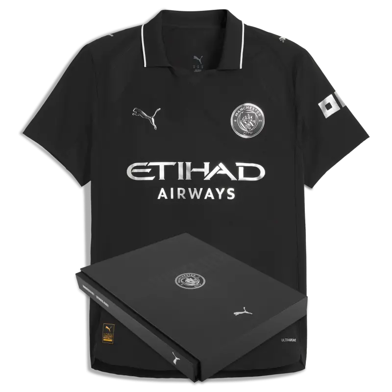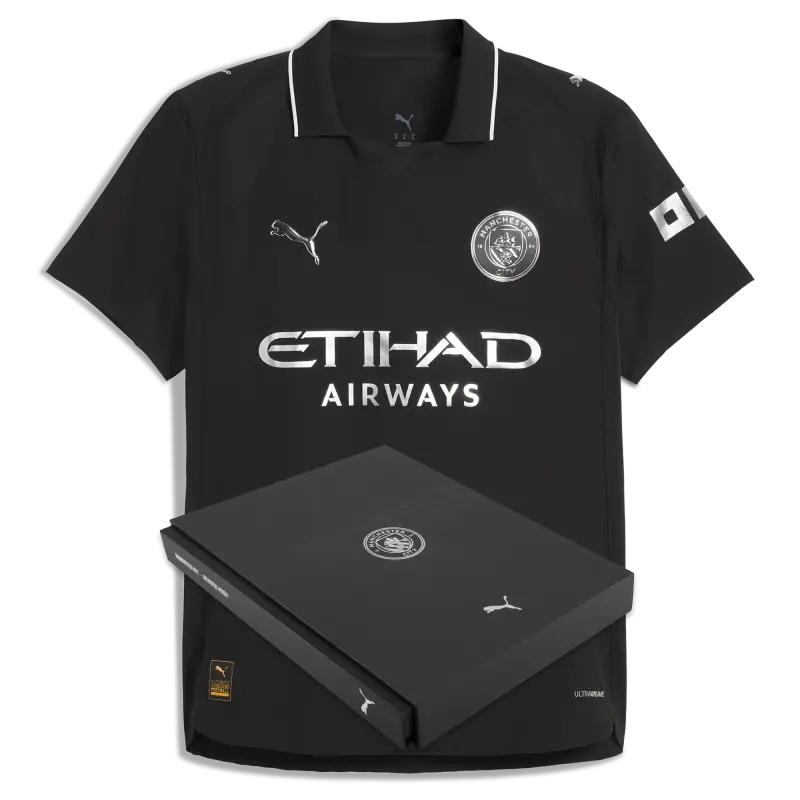 Manchester City Away Authentic Jersey Black 2025/26 With Custom printing in Gift Box