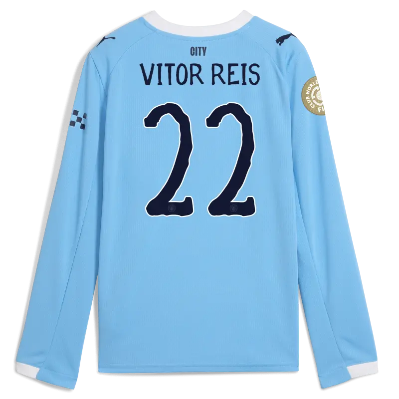 Kids’ Manchester City KidSuper Club World Cup Home Jersey 2025/26 Long Sleeve With VITOR REIS 22 Printing