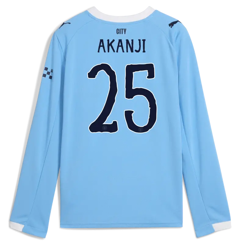 Kids’ Manchester City KidSuper Home Jersey 2025/26 Long Sleeve With AKANJI 25 Printing