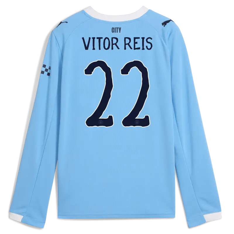 Kids’ Manchester City KidSuper Home Jersey 2025/26 Long Sleeve With VITOR REIS 22 Printing