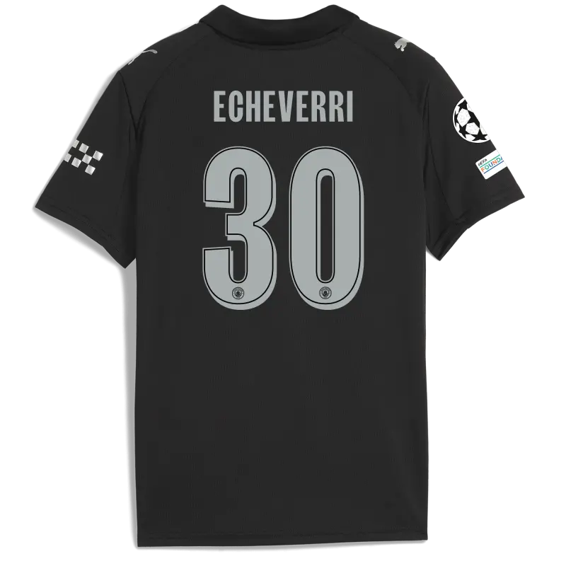 Kids’ Manchester City Man City Champions League Away Jersey 2025/26 With ECHEVERRI 30 Printing