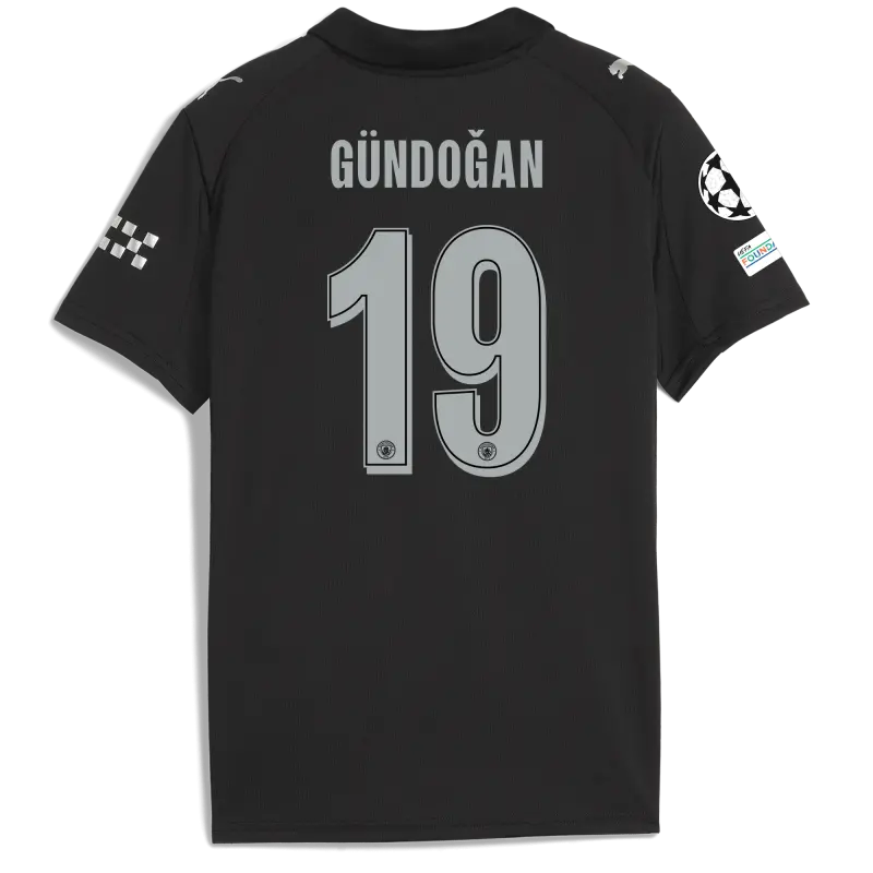 Kids’ Manchester City Man City Champions League Away Jersey 2025/26 With GÜNDOĞAN 19 Printing