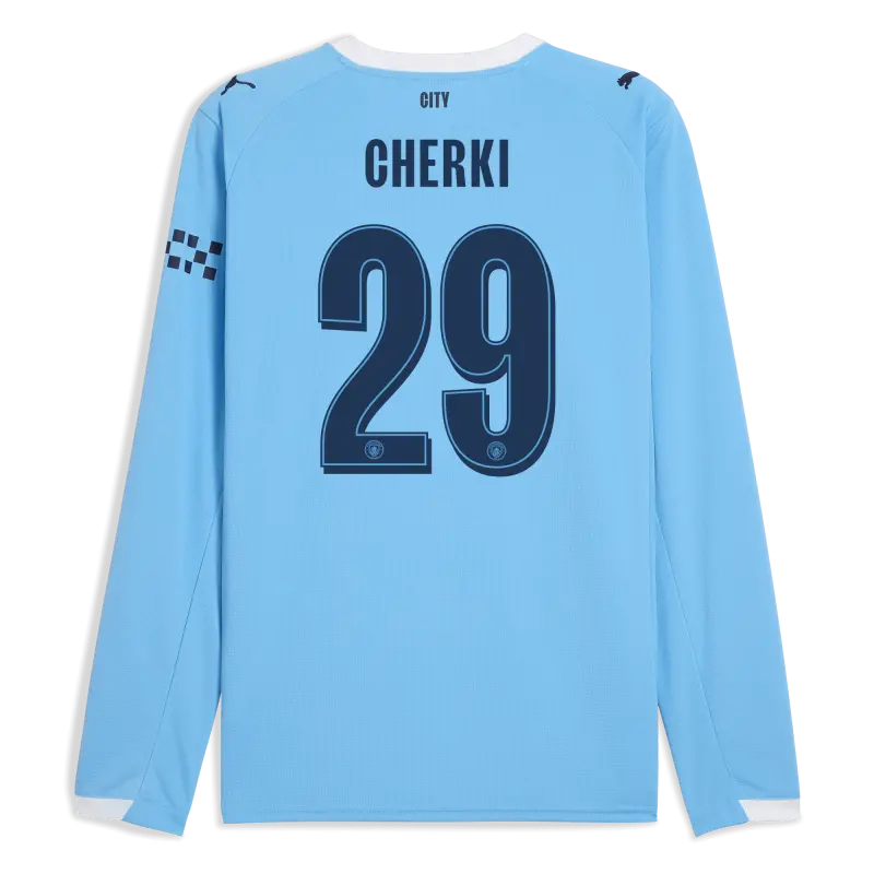Kids’ Manchester City Man City Home Jersey 2025/26 Long Sleeve With CHERKI 29 Printing