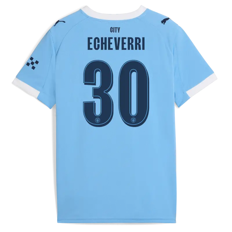 Kids’ Manchester City Man City Home Jersey 2025/26 With ECHEVERRI 30 Printing