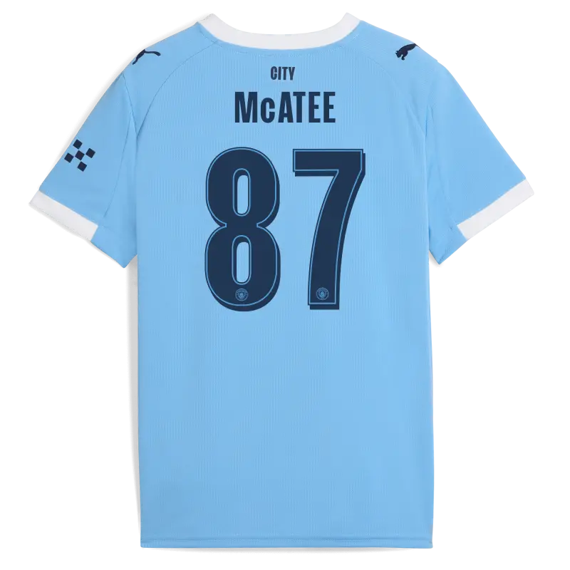 Kids’ Manchester City Man City Home Jersey 2025/26 With McATEE 87 Printing