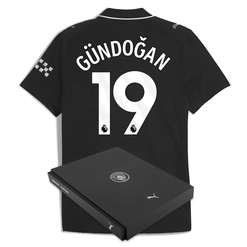 Manchester City Away Authentic Jersey 2025/26 With GÜNDOĞAN 19 Printing in Gift Box