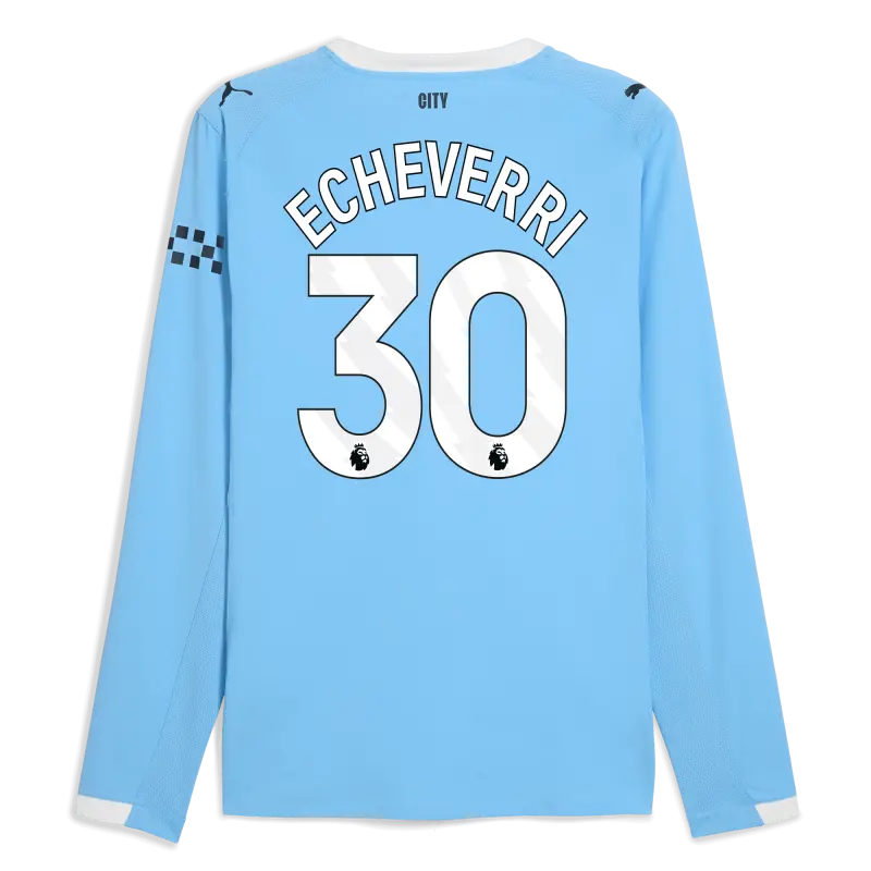 Manchester City Home Authentic Jersey 2025/26 Long Sleeve With ECHEVERRI 30 Printing