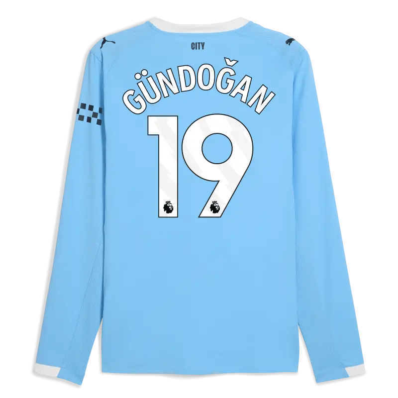 Manchester City Home Authentic Jersey 2025/26 Long Sleeve With GÜNDOĞAN 19 Printing