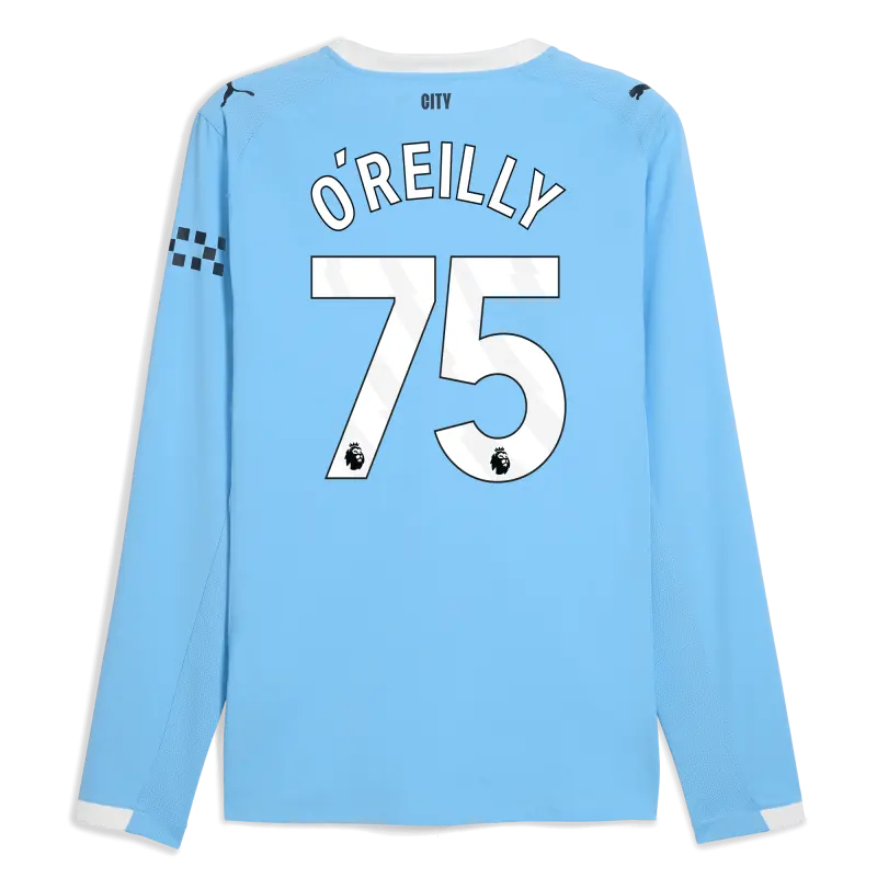 Manchester City Home Authentic Jersey 2025/26 Long Sleeve With O’REILLY 75 Printing