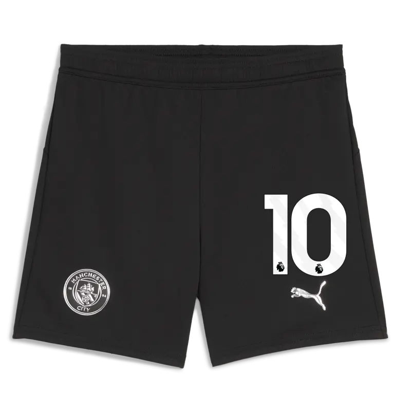 Kids’ Manchester City Football Shorts Black 2025/26 With #10