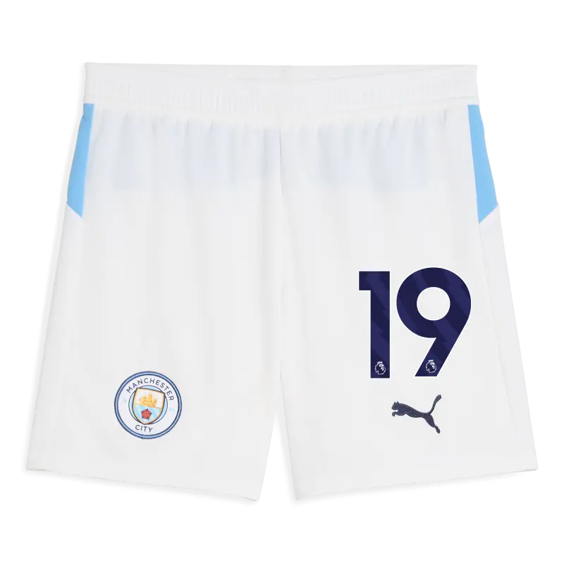 Kids’ Manchester City Football Shorts White 2025/26 With #19