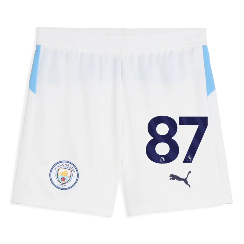 Kids’ Manchester City Football Shorts White 2025/26 With #87