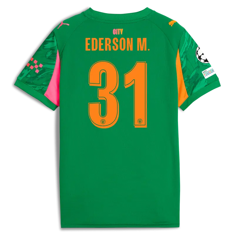Kids’ Manchester City Man City Champions League Goalkeeper Jersey Green 2025/26 With EDERSON M. 31 Printing
