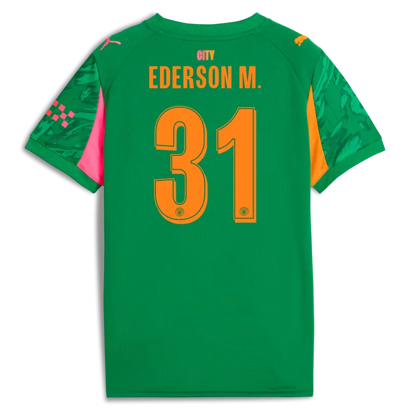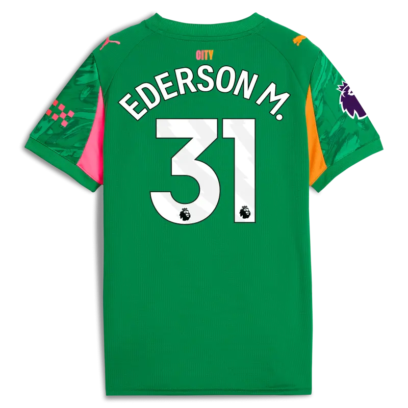 Kids’ Manchester City Premier League Goalkeeper Jersey Green 2025/26 With EDERSON M. 31 Printing