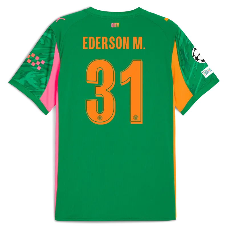 Manchester City Man City Champions League Goalkeeper Jersey Green 2025/26 With EDERSON M. 31 Printing