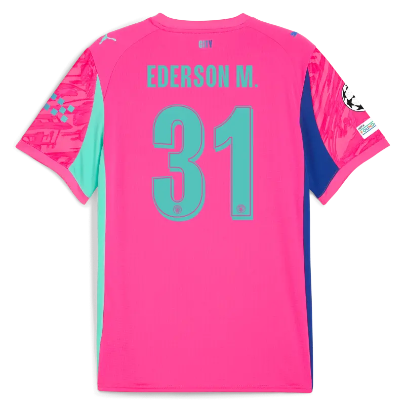Manchester City Man City Champions League Goalkeeper Jersey Pink 2025/26 With EDERSON M. 31 Printing