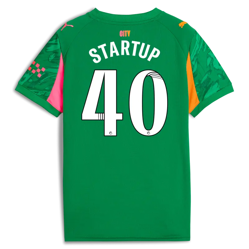 Kids’ Manchester City Goalkeeper Jersey Green 2025/26 With STARTUP 40 Printing