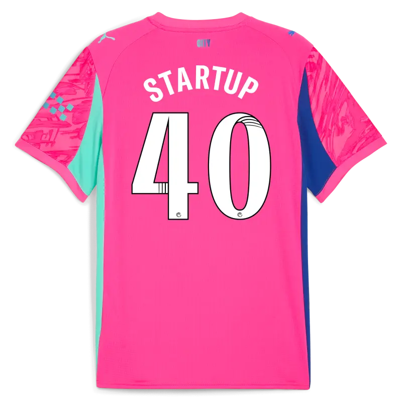 Kids’ Manchester City Goalkeeper Jersey Pink 2025/26 With STARTUP 40 Printing