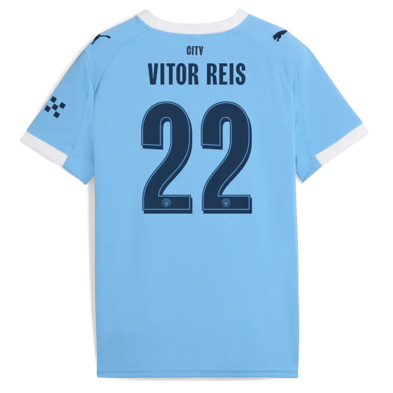Kids’ Manchester City Man City Home Jersey 2025/26 With VITOR REIS 22 Printing