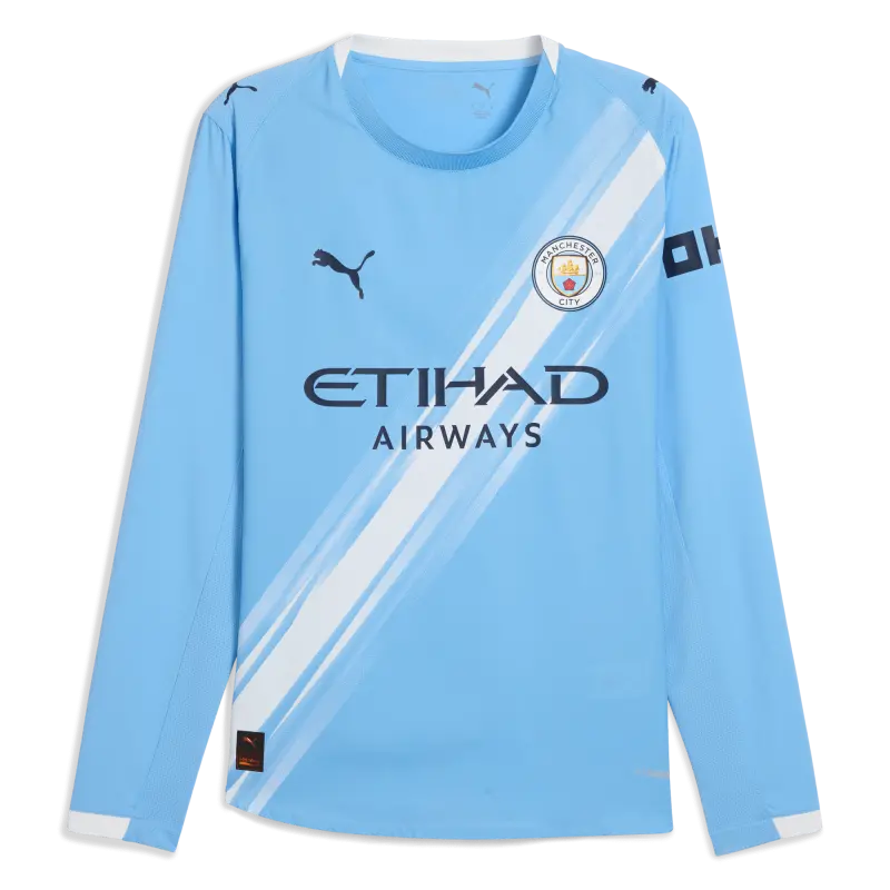 Manchester City Home Authentic Jersey 2025/26 Long Sleeve With Custom Printing