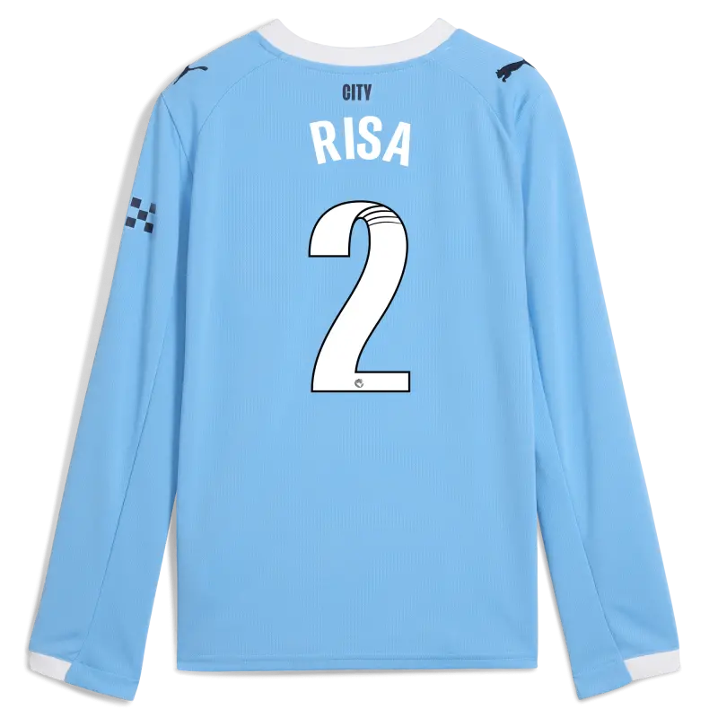 Kids’ Manchester City Home Jersey 2025/26 Long Sleeve With RISA 2 Printing