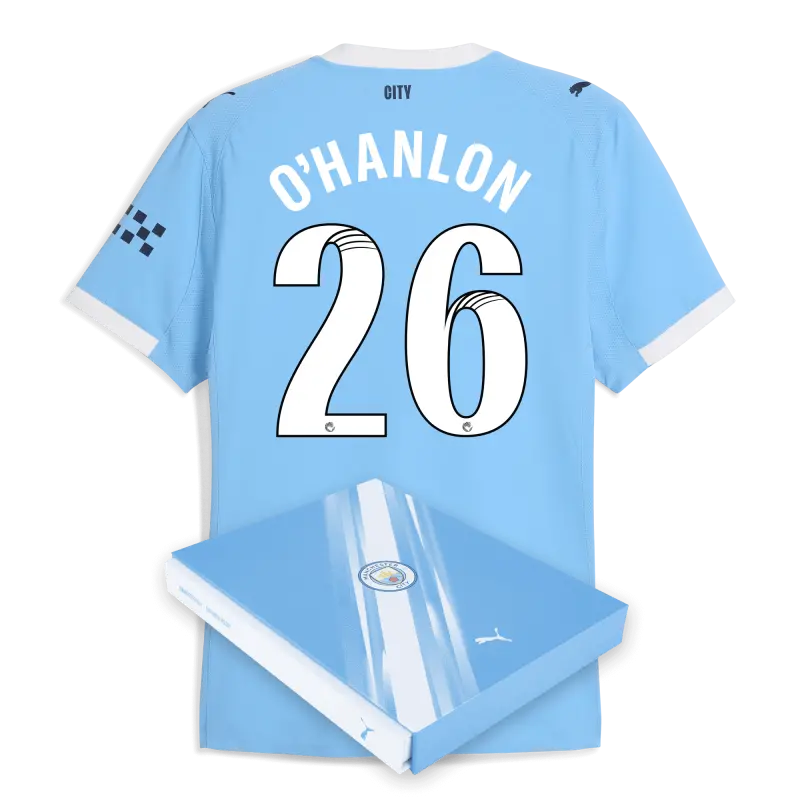 Manchester City Home Authentic Jersey 2025/26 With O’HANLON 26 Printing in Gift Box