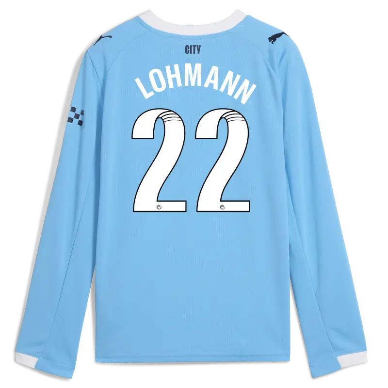 Kids’ Manchester City Home Jersey 2025/26 Long Sleeve With LOHMANN 22 Printing