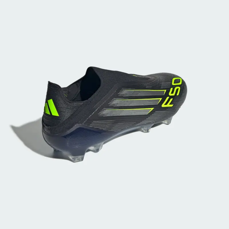 Find your fast to truly express yourself on the field. Feel the rush in adidas F50 cleats engineered for speed. These laceless Elite soccer cleats have a thin Fibertouch upper with an adidas PRIMEKNIT collar for lockdown and a Sprintweb 3D texture to help keep the ball close. Designed for dry grass pitches, the springy Sprintframe 360 outsole supports relentless pace.