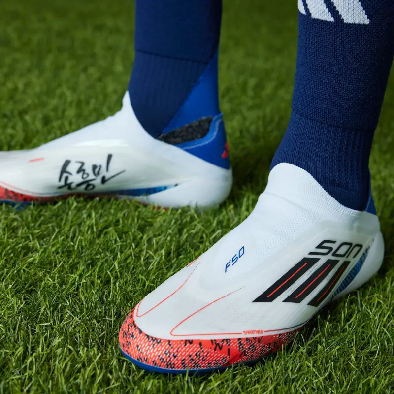 One soccer speedster celebrates another. Clad in South Korean flag colors, these limited-edition adidas F50 Elite cleats display Son Heung-min’s name in English and Korean. Lightweight and laceless, the Fibertouch upper includes a Sprintweb texture for Son-like dribbling. Underneath, a Sprintframe 360 outsole keeps you quick on firm ground.